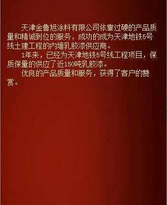 天津金魯旭乳膠漆參與天津市地鐵5號線工程建設(shè)